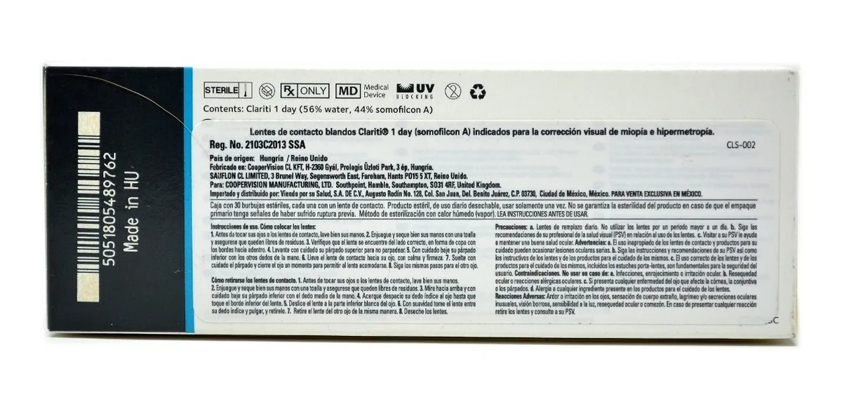 Los Clariti® 1 Day de CooperVision son lentes de contacto de uso diario diseñados para ofrecer una combinación ideal de comodidad, salud ocular y rendimiento visual. Fabricados con silicona hidrogel, estos lentes permiten una alta transmisión de oxígeno, ayudando a mantener los ojos frescos, blancos y saludables durante todo el día.
