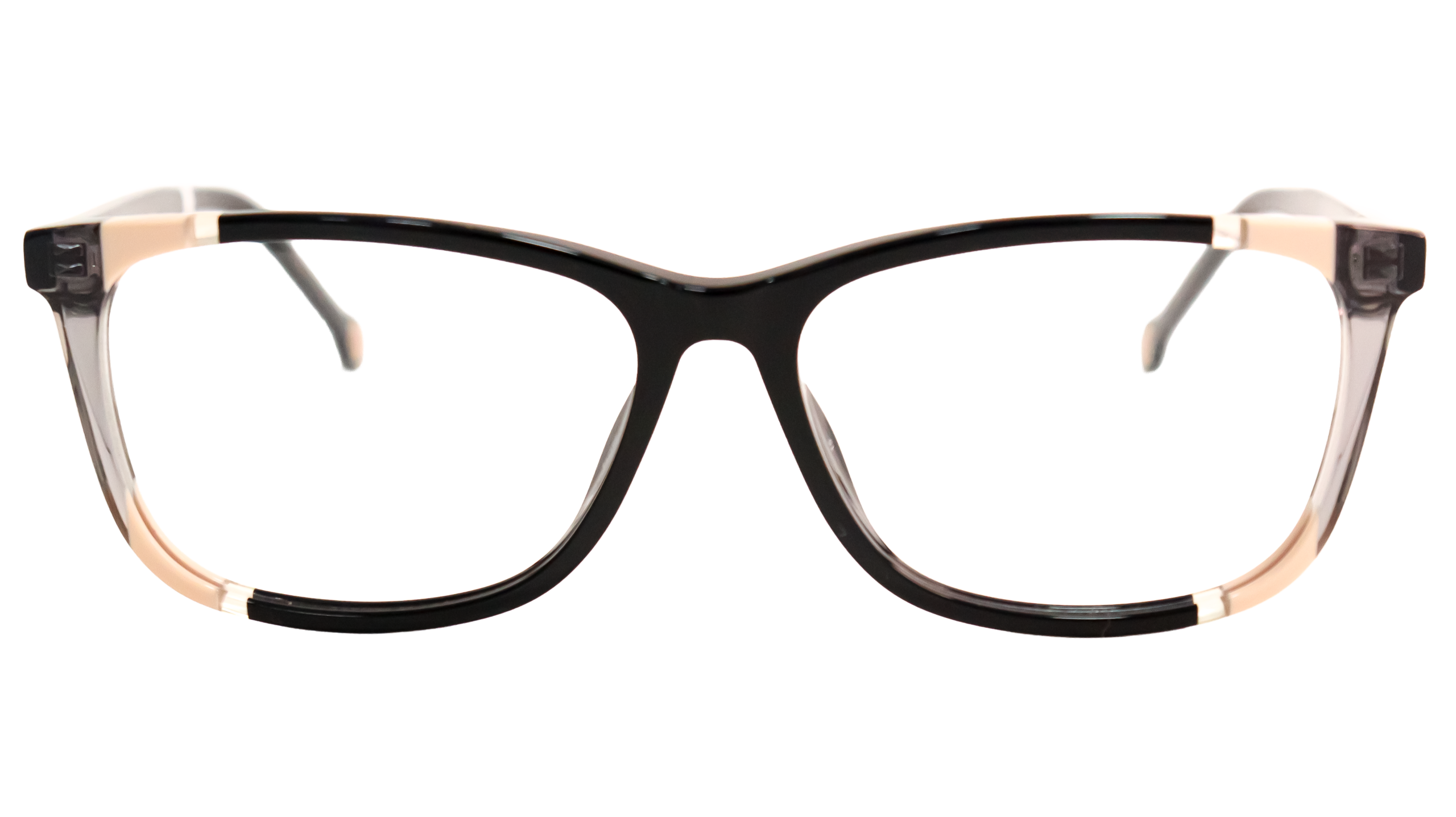 La montura en color negro con detalles sobrios (Black Nude) ofrece un acabado elegante y fácil de combinar con distintos estilos. Fabricada en acetato resistente, esta montura proporciona ligereza y confort, permitiendo la adaptación de lentes graduados personalizados según la prescripción visual de cada usuario.