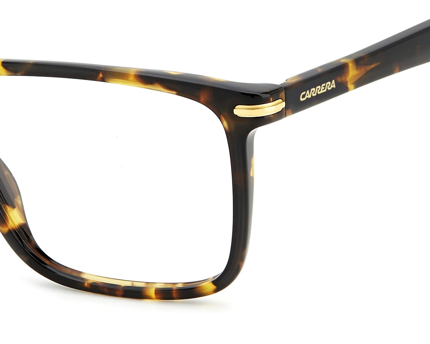 La montura está fabricada en acetato resistente, lo que la hace ligera, duradera y cómoda para uso diario. Gracias a su construcción sólida, permite la adaptación de lentes graduados según la prescripción visual de cada usuario. Viene con funda original de la marca Carrera para protección y transporte seguro de la montura.