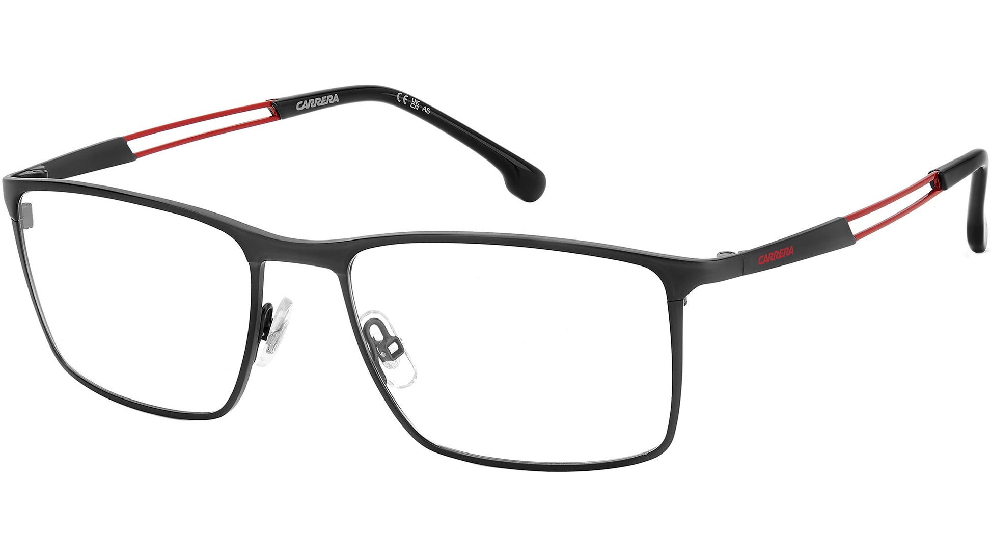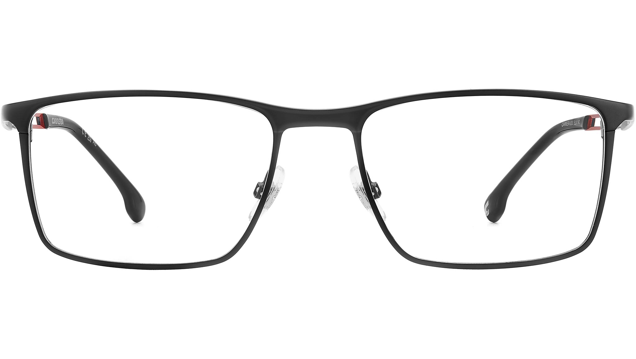 Las gafas oftálmicas Carrera CARRERA 8898 BLX son una montura óptica original pensada para hombres que buscan un diseño moderno y elegante con un toque deportivo. Su estética rectangular con acabado en negro mate y detalles en rojo aporta un estilo versátil que se adapta tanto a looks casuales como formales, ideal para uso diario.